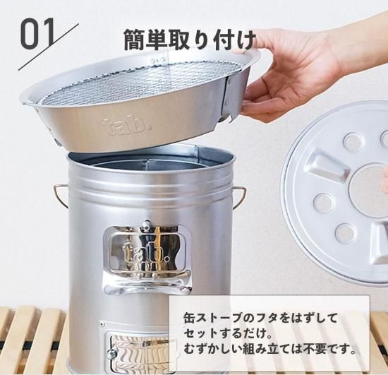 【商品名】tab. 缶ストーブEX&ワイドグリルSE & スリムバッグ &替え網2枚 4点セット