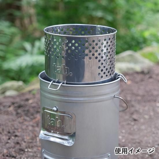 缶ストーブにセットすると、ドラフト効果と二次燃焼がさらにブーストされ、