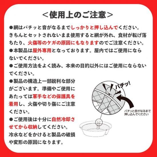 ・製品の構造上一部鋭利な部分がございます。準備やご使用にあたっては軍手などの保護具を着用し、火傷や切り傷にご注意ください。