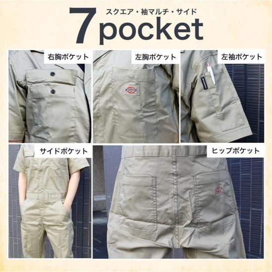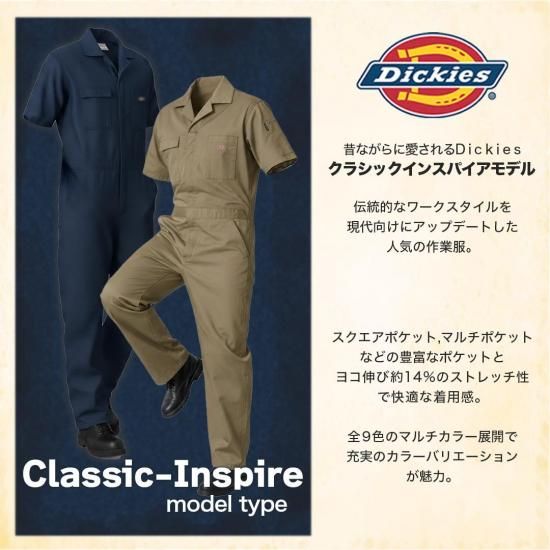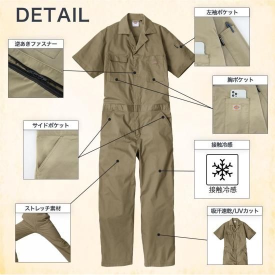 ディッキーズ つなぎ Dickies ワークウェア 半袖 作業服 メンズ ストレッチ 吸汗速乾 つなぎ 作業着 ユニフォーム カラー豊富