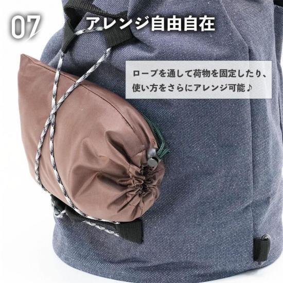 【材質】生地:デニム(内面コーティング)/ ベルト・ジョイント:ポリプロピレン