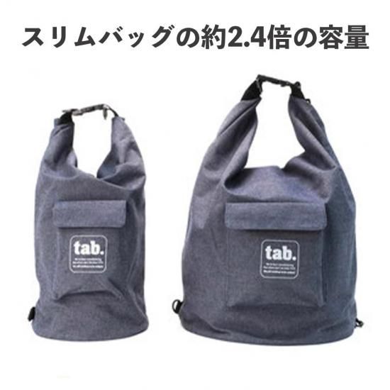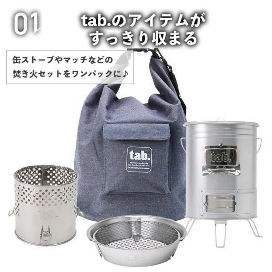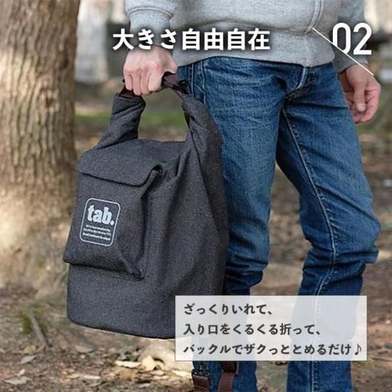 tab.のアイテムがすっきり収まる。ストーブ収納や薪バッグとして使える大容量バッグ。