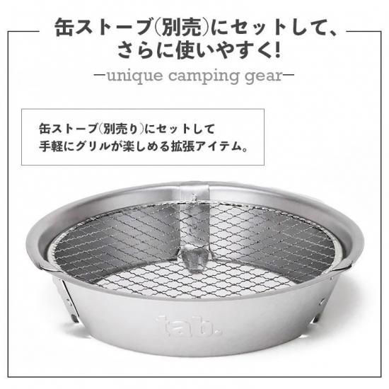 ・缶ストーブにセットして手軽にグリルが楽しめる拡張アイテム。