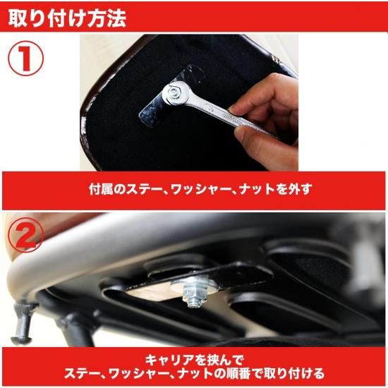 ※ボルト2本で簡易的な取付となるためスーパーカブ、クロスカブの場合は取付後でもシート位置がズレる場合がございますが不良ではございません。